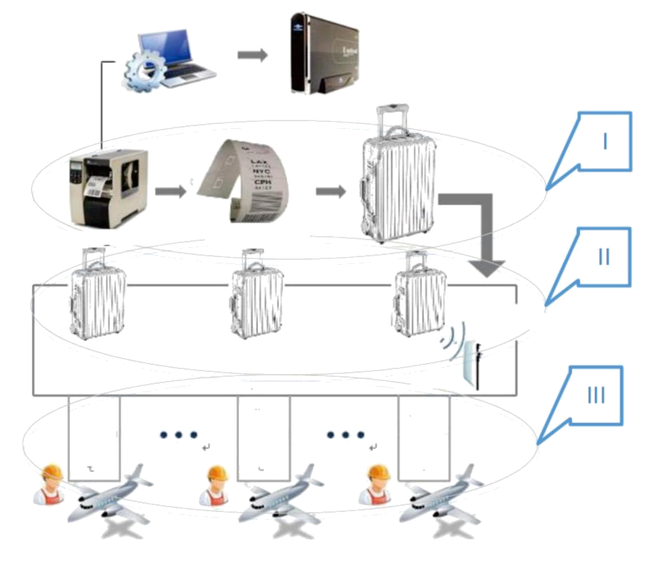 辦理登機(jī)過程打印RFID標(biāo)簽與行李綁定。